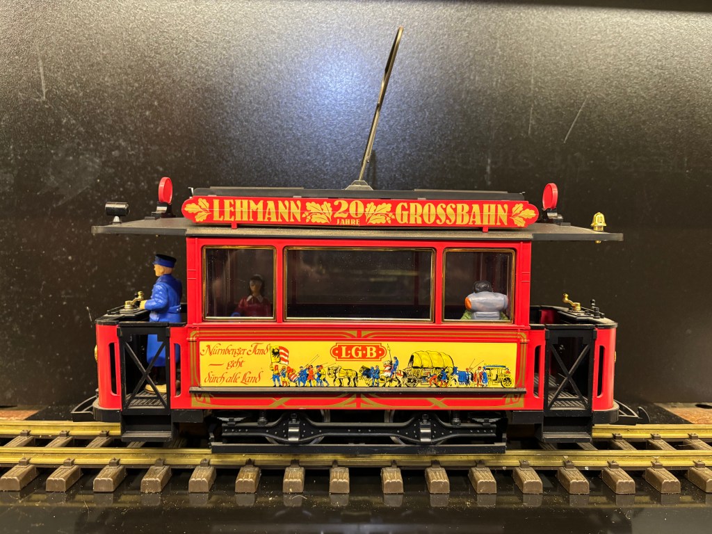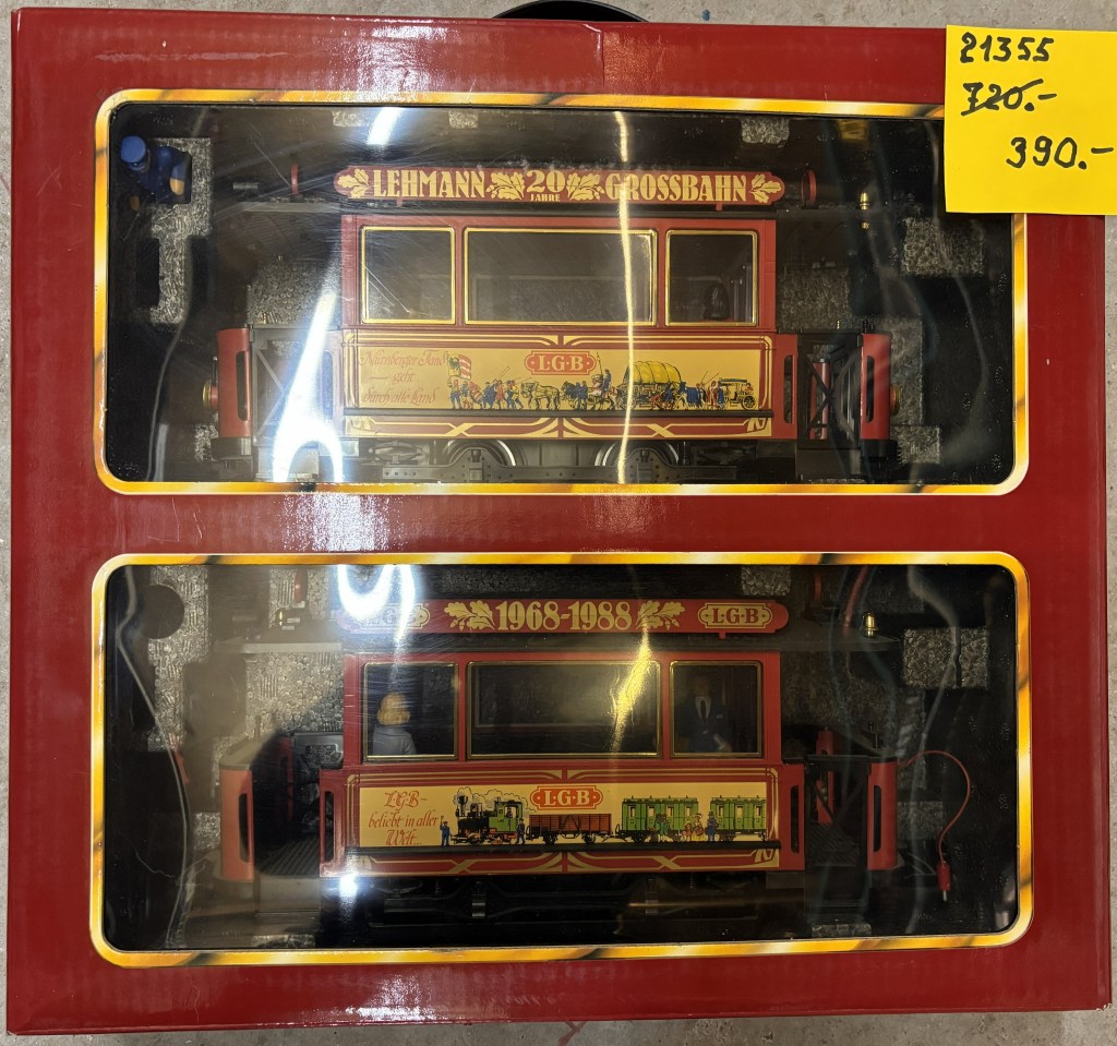 LGB Strassenbahn 20Jahre LGB mit Beiwagen, Beleuchtung diverse Figuren in Originalverpackung.