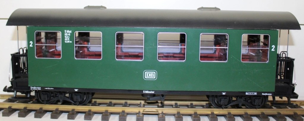 LGB 3070 DB Personenwagen mit Metallrädern, Beleuchtung, Figuren und originaler Verpackung.